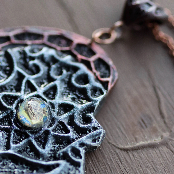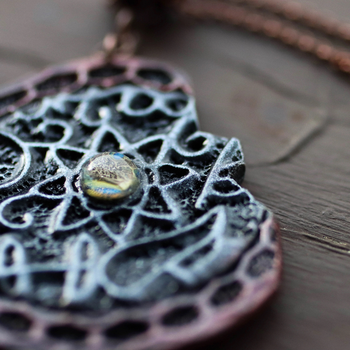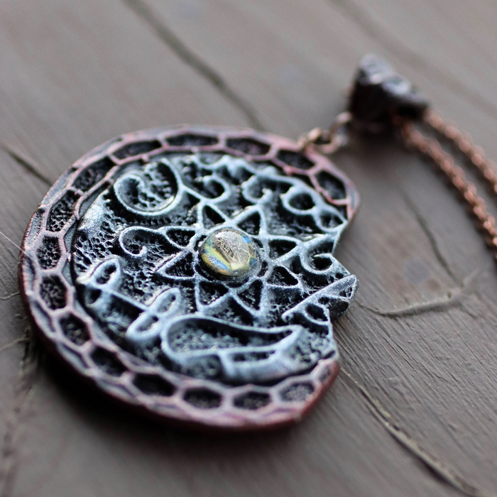 В центре сиял желтый камень. Обрамляла амулет медная стена.