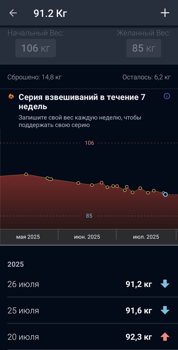 Результат на эти выходные 91.2 (-5.8 от начала). Так мало не весил уже очень давно.