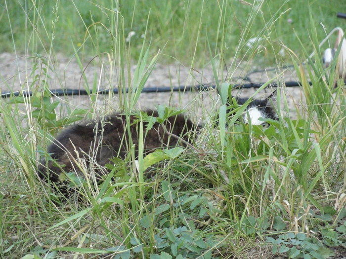 Палатки в несколько рядов, на поддонах, и пока мы там были, заметили множество бегающих полевых мышей. Раньше там еще были змеи, но когда кто-то приехал с котенком, он стал ловить этих мышей, мыши чувствуя охотника реже высовывались, и змеям это место стало неинтересно. Лагерь расширился, удобства добавились, территория, уже кота, разрослась, и однажды он вступил в схватку со змеёй, вроде ужом (гадюки тоже есть там, но их мало), ну в этой битве оба нанесли друг друг увечий, кота не успели довезти до ветеринара(около 3 часов пути) а вокруг лагеря теперь подкидывают еду возле обнаруженных норок ежей. и завели нового хозяина))