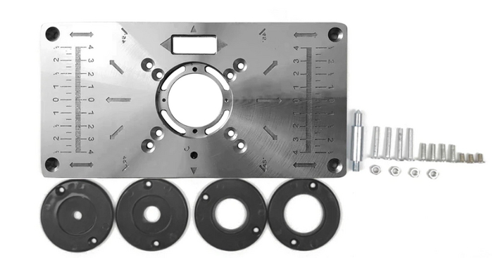 Пластина имеет отверстия для крепления фрезеров разных типоразмеров, с соблюдением центровки.