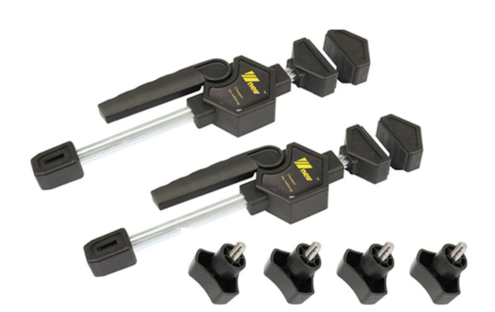 Угловые зажимы подобной конфигурации имеют огромные рейтинги продаж, отличаются простотой в использовании и надёжной фиксацией заготовок под прямым углом.