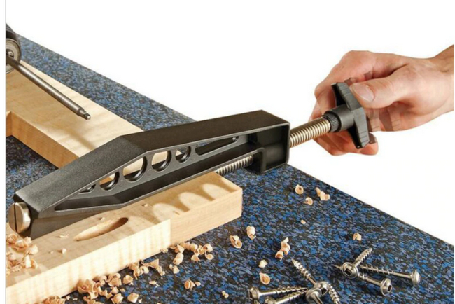 Прижим подойдёт только для позиционирования крепления заготовок под косой шуруп.