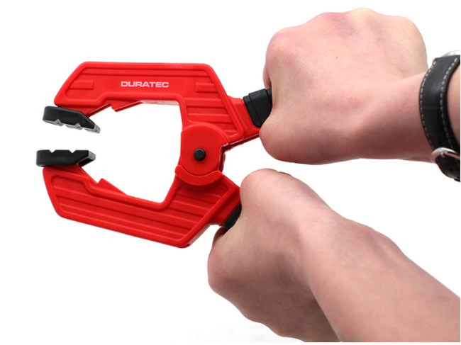Устройство струбцины напоминает конструкцию бельевой прищепки. Мощная струбцина предназначена для фиксации плоских заготовок к столу и удерживания их при обработке или для сжатия материалов при склеивании.