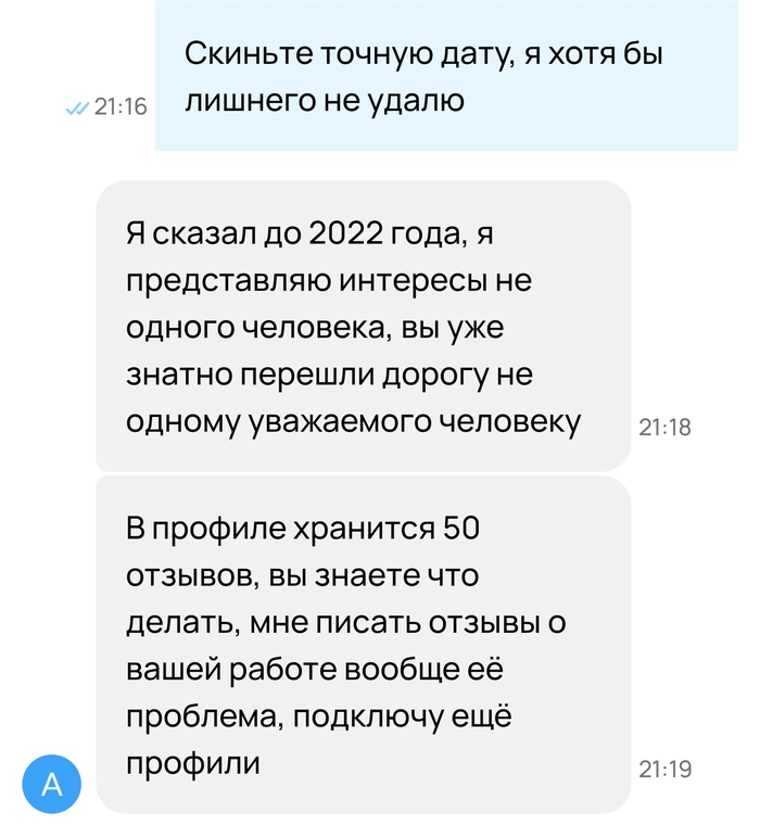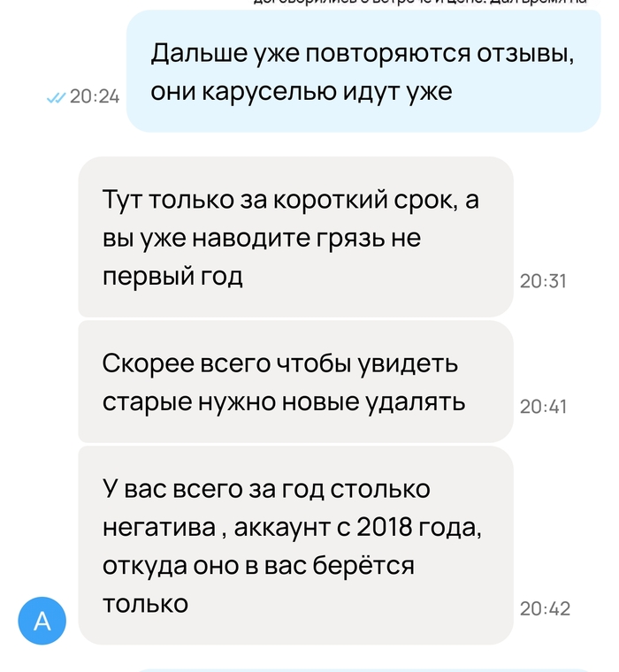Начинаю общаться с автором отзыва. Оказывается этот весьма целеустремлённый человек нанят продавцом (о чем он прямо сказал в чате), которому я однажды перешёл дорогу негативным отзывом. Для понимания, из 207 отзывов за 7 лет существования профиля не более 10 негативных. Это надо было постараться, чтобы меня так настроить.