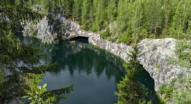 День 1. Поезд (первый раз и сразу в современный плацкарт. У-успех). Горный Парк Рускеала, мраморные карьеры, чистейшая голубая вода, мраморные статуи и фигурки, старый телефон на стене, свежий воздух, минимум туристов. Красота, одним словом. Единственный минус - редкий дождик и осы, наглые голодные осы. Много ос. Пришли в кафешку попробовать колбаски из оленины, а там они. Пришлось делиться морсом. Кажется, осы остались довольны