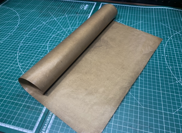 Вот ременная кожа. Первым делом я избавляюсь от сетчатого рисунка. Пару раз были случаи, заказчик сомневался в натуральности материала, тк этот узор вполне резонно вызывает ассоциации с тканевым материалом.