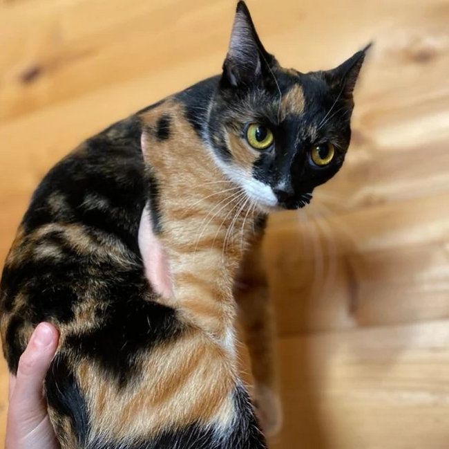 На данный момент Кривохвостик стерилизована, здорова, привита и полностью готова к переезду в семью. Очень ласковая, благодарная. Живет на передержке, к сожалению, в клеточке, но это лучше, чем улица. Конечно, скорее нужен дом.. Потому что девочка грустит без внимания и общения