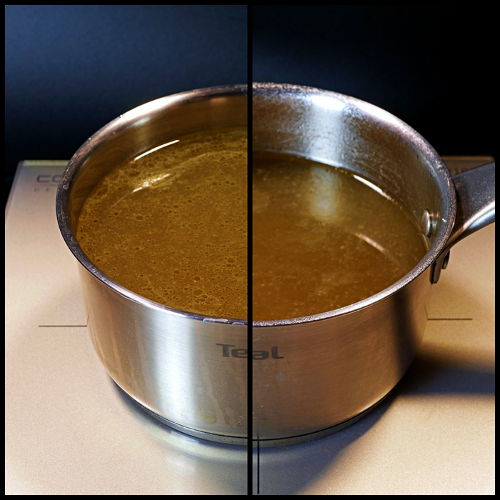 Меня не интересовала прозрачность бульона, поэтому вместо долгого выпаривания на минимальном огне, я экстрагировал из мяса всё что надо в скороварке за 40 минут, а потом уварил полученный бульон, примерно, вдвое на огне выше среднего ещё минут за 20.
