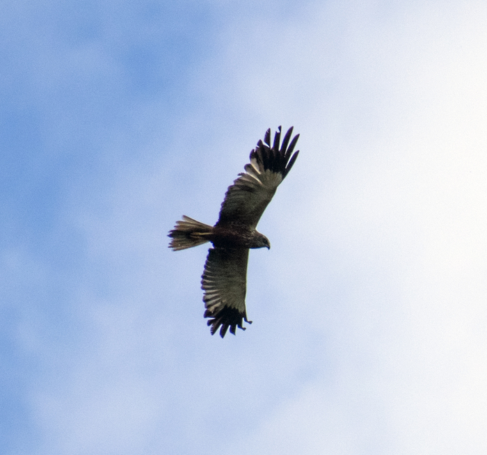 4. Черный коршун. Красная книга Московской области: немногочисленный широко распространенный вид с сокращающейся численностью. Птица, которую я очень хотел увидеть, уж очень понравилось её зловещее название И однажды она мне все-таки попалась. Узкие крылья, хвост треугольником – красавчик.