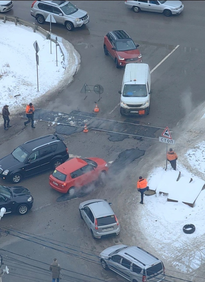 Вчера, 27.01.2024, некие дорожные рабочие принялись латать дыры. Разумеется, прямо в лужи и снег.