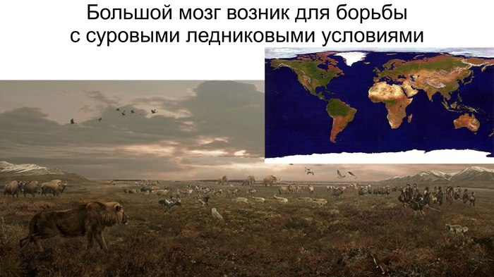 Ну, а когда уже из Африки вышли — версия практически того же самого мифа, что большой мозг возник для борьбы с суровыми ледниковыми условиями.