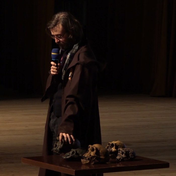 Итак. Часто задают разные вопросы о происхождении человека и чаще всего спрашивают про эволюцию мозга и эволюцию интеллекта. Естественно, интеллект и мозг больше всего отличают современного человека от всех других, и даже сегодня у меня несколько раз спрашивали: «А какой самый главный критерий, какой разграничитель между обезьяной и человеком?» И всем понятен ответ, что это интеллект. Однако, с интеллектом древних людей и с мозгом древних людей много сложностей и вопросов.