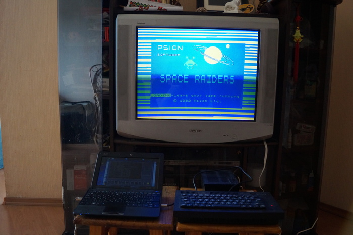 Следующей проблемой было найти софт. Кассетные магнитофоны у меня в доме уже не водятся, а кассет с софтом для Спектрума не найти и подавно. На помощь пришли проекты от энтузиастов. В интернете можно найти файлы образов кассет с различными играми и софтом. Эти файлы можно воспроизвести через специальный софт. Все что остается - подключить аудиовыход ПК к Синтезу, ввести заветное LOAD "" и запустить воспроизведение образа.