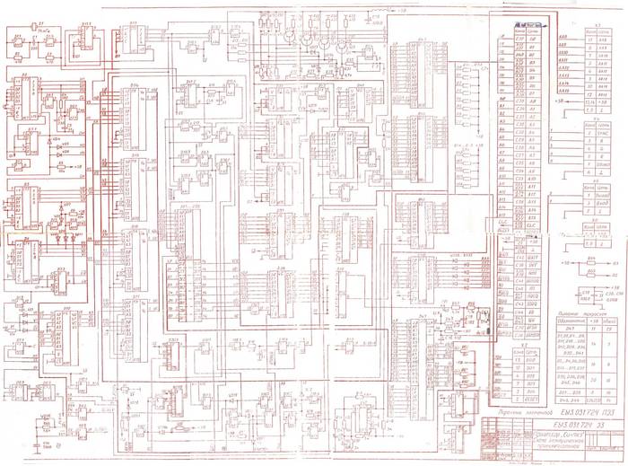 Получив такой результат я расстроился, но не потеряв надежды полез обратно в интернет, где в последствии нашел принципиальную схему компьютера Синтез. Вот она, кому интересно: