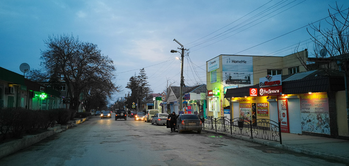 Старый Крым вечером. Движение на дороге минимально, народу почти нет, но какая-то романтика маленького городка здесь присутствует.