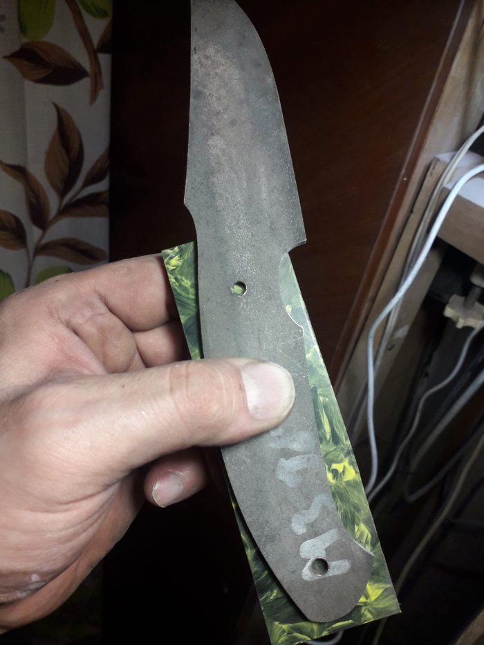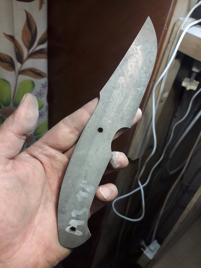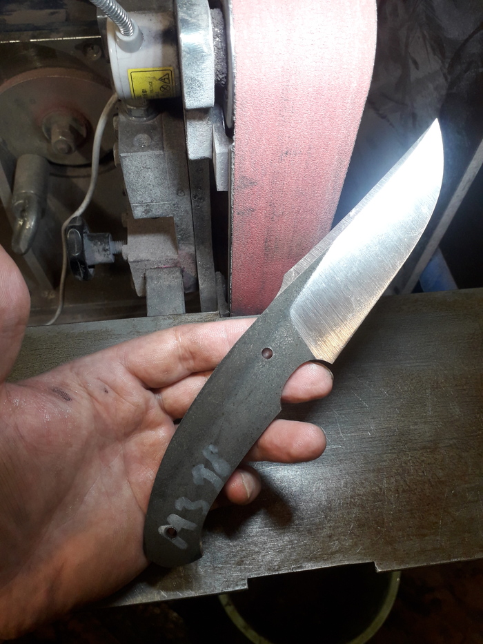 Дальше болгаркой с охлаждением отпилил ненужное и прошелся контуровкой на гриндере (ленточно-шлифовальном станке)