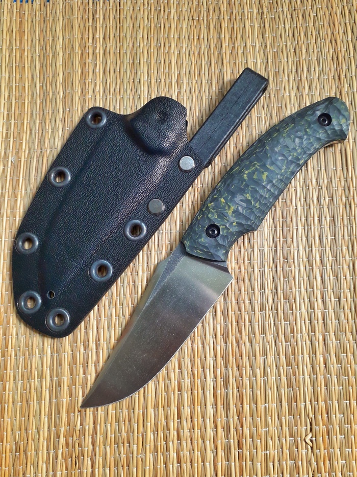 Сталь м398 от Валерия Лисицкого, карбон от Илец GT. Сборка данного ножа из присланных материалов обошлась заказчику в 4500р.