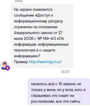 началось всё с 15 апреля, не только у меня, но у всех, кого я спрашивал, кто сидит на ростелекоме, все эти сайты открываются через билайн
