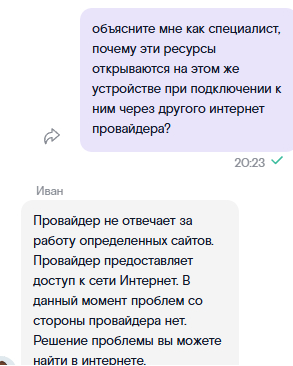 объясните мне как специалист, почему эти ресурсы открываются на этом же устройстве при подключении к ним через другого интернет провайдера?