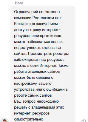 Заколебался, что половина сайтов перестала открываться. Написал в поддержку ростелекома: