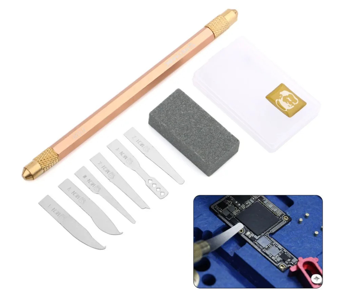 Инструмент с различными насадками для соскабливания и поддевания. Стоит 1 400 руб. Ссылка на него