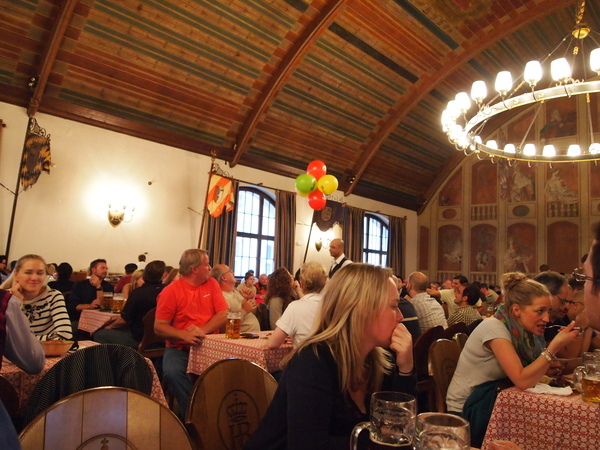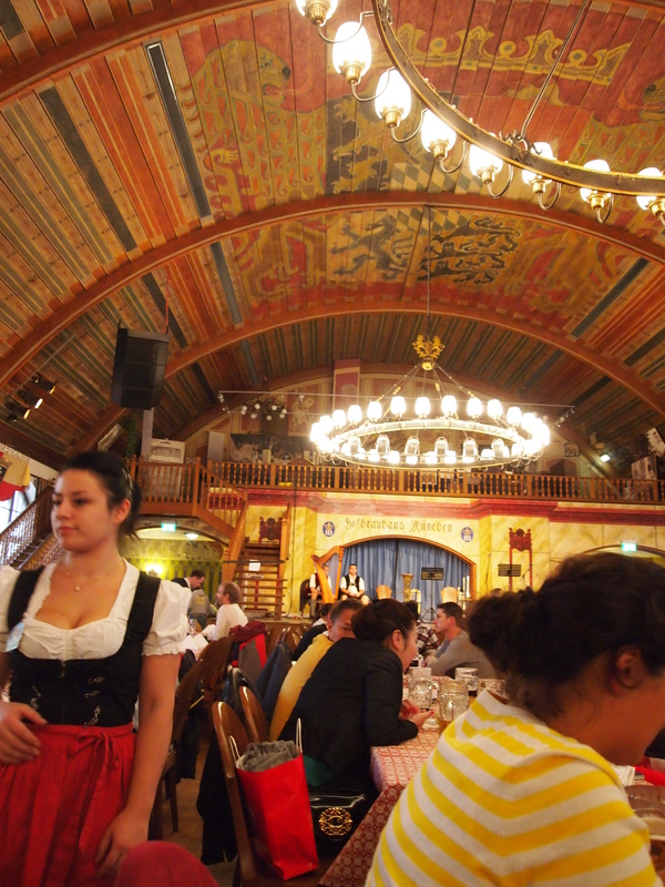 После заселения мы поехали в центр, прошлись вдоль витрин и купили-таки дирндль. Далее путь наш лежал в Хофбройхаус - огромную пивную от пивоварни Хофброй. Её посещение - это как репетиция перед Октоберфестом. Те же баварские оркестры на сцене, то же пиво в литровых кружках и сытная закусь, те же продавцы крендельков и пряников, но главное - тот же квест "найди себе место за столом". Мы прошли по первым двум этажам пивной с квадратными глазами от количества народу и смогли найти себе место только на третьем этаже, который был заполнен всего лишь на две трети.