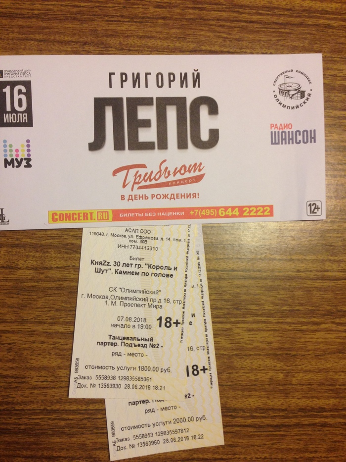 Звоню в СК Олимпийский и спрашиваю, есть ли фанбилеты в танцевальную зону и конечно их уже нет, но…на официальном сайте http://www.korol-i-shut.ru продают билеты в танцевальную зону, но правда по обычным билетам.