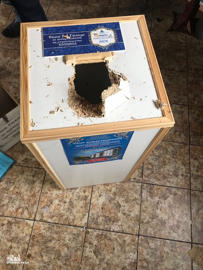 После этого они разбросали и разбили церковную утварь, а также стали взламывать кружки для пожертвований, куда собираются деньги на строительство первого в Украине православного хосписа для онкобольных «Покров».