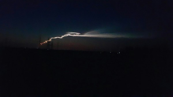 Вот показались первые пашни, одолев одну из них в небе появилось нечто и стремительно разорвало горизонт оставив за собой светящийся шлейф озаряемый последними лучами заката.
