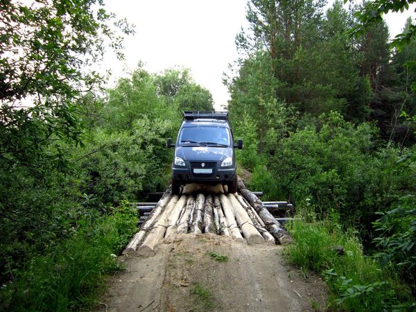 3. Порой нам приходилось преодолевать вот такие мостики, которые, на первый взгляд, упадут от легкого ветерка, а на деле выдерживают груженый автомобиль.