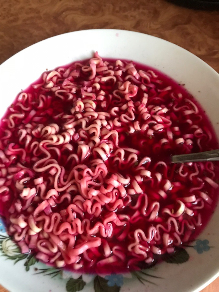 За это время лапша тоже приобретает розовый оттенок.