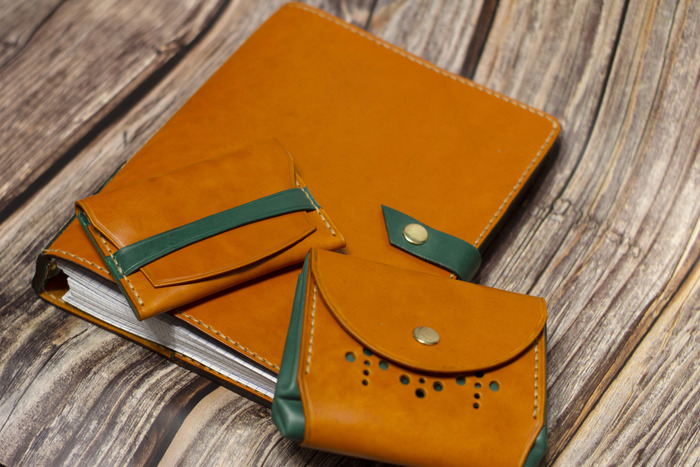 Затем вспомнил, что как-то меня просили сделать кошелёк. Ну тот самый, "гармошкой". Ну я и сделал вдогонку блокноту: