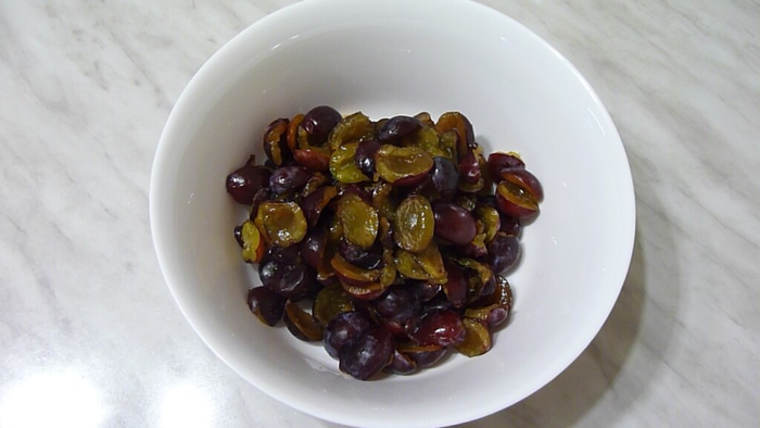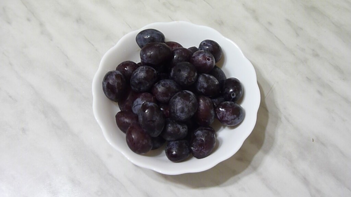 Для варенья я обычно беру одинаковое количество яблок и слив. Но если чего-то выходит больше, то это не принципиально. Сливы и яблоки хорошо мою, а затем их нарезаю. Сливы с помощью ножа я режу пополам. Если сливы переспевшие, то их можно просто надрывать и вынимать косточку. Это уже менее красивой вариант, но всё-таки приемлемый. Взвешиваю я уже подготовленное сливы без косточек.