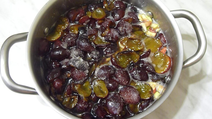 Сегодня я буду варить очень вкусное варенье из яблок со сливами. Сливы для этого варенья подойдут разные. Я варю его как c синими, так и с желтыми сливами. В любом случае варенье получается очень вкусным.