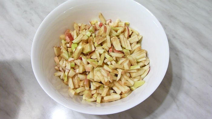 Яблочки можно нарезать тоже разными способами. Самый простой из них — это обрезать яблочко по кругу, оставляя сердцевинку. Второй способ — разрезать яблоко пополам, затем на четвертинки, удалить серединку с семечками и мелко разрезать на небольшие дольки. Еще яблоко можно нашинковать соломкой. Сначала четвертинки разрезать на полоски, а потом немного наискосок на тонкую соломку. Этот вариант мне нравится больше всего, потому что варенье в итоге с такими яблоками получается более красивым.