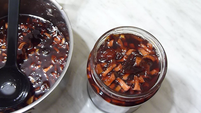 Готовое варенье я разливаю по стерилизованным банкам. Банки я обычно мою с содой или горчичным порошком, а затем стерилизую над паром. С синими сливами варенье получается более темным. В горячем виде оно жидкое, но так как в сливах присутствует природный пектин, он дает возможность остывшему варенью загустеть. Варенье получается красивым, ароматным и очень вкусным. Затем я банку закрываю. Это можно делать винтовыми крышками или металлическими с помощью ключа. Приятного вам аппетита!