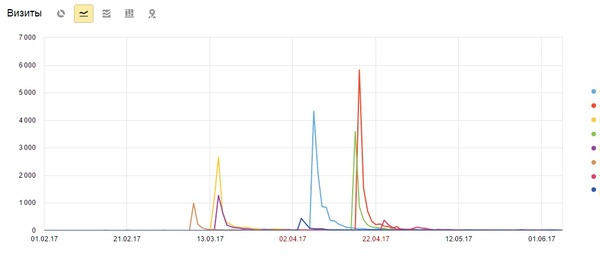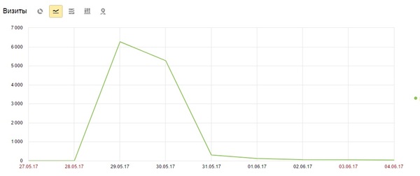 Динамика переходов на сайт с поста в одном из пабликов «ВКонтакте» согласно сервису «Яндекс.Метрика»: