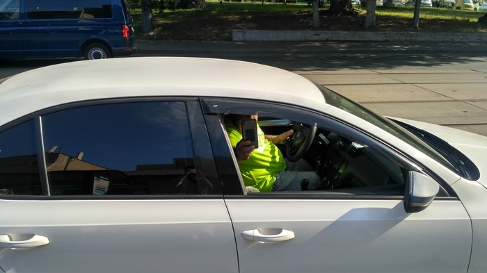 Накануне пришёл с работы, заснул, проснулся, пошёл на трамвайную остановку. После 10 минут стояния подъезжает какой-то тип, начинает меня снимать на фото (молча, без претензий, но в упор). У меня телефон был в руках, поэтому загородился им и заодно сделал несколько фото и видео.