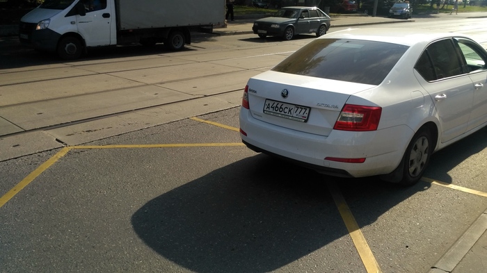 Этот дурной тип на Skoda Octavia, а466ск777 развернулся через трамвайные пути и свалил туда, откуда приехал.