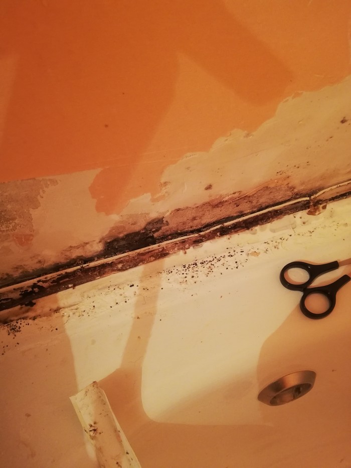 На зачистку ушло более часа. Потом обработка от грибка средствами. Хозяйка меня уверила, что 2 года назад нанимала двух ребят перекрасить стену. Либо грибок был и до них и они плюнули на это, либо он так быстро развился. Что я хочу сказать. 1. Краска не лучшая идея для ванной (тем более дешёвая). 2. Если вы ставите (а скорее всего так и есть) уголок или делаете его из силикона, заведите тряпочку и протирайте после помывки. Я так делаю у себя дома и с последнего ремонта прошло 7 лет, а о грибке не слышно.