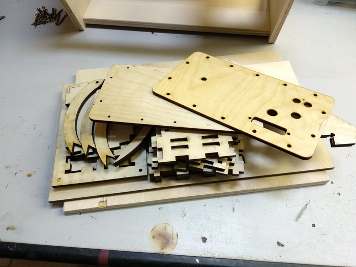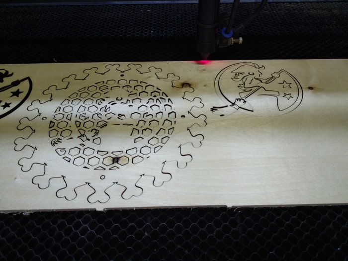 Режем на лазере все элементы из тонкой фанеры (6 мм, 4 мм).