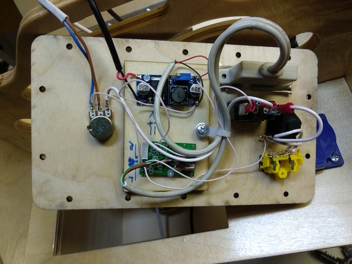 Продолжаем работу с электроникой. Самым быстрым и простым источником USB разъема на фланце оказалась панель USB от компьютера. Один будет для плеера, а второй просто оставим под зарядку.Тумблер переключает сигнал - c линейного входа или с mp3 плеера. Линейный вход представлен джеком 6 мм, или тюльпанами.