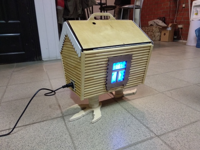 Начинаем со списка "хочу". Колонка должна играть музыку с флешки. Хорошо, если она будет антивандальной, маленькой, хранить все провода внутри себя. Если в ней можно будет оставить телефон на зарядке, и играть с него музыку - так вообще отлично. Мне как инженеру сразу на ум приходит простая и практичная форма для колонки - прямоугольный параллелепипед, что сложного - врезать динамик, усилить углы, сделать выступы для защиты от падения и готово. Но потом озарение - есть же отличный персонаж славянского фольклора - баба-яга, которая жила в избушке на курьих ножках и избушка - неплохая форма для колонки. Гуглежка показала - похоже таких колонок никто не делал! Рисуем колонку в САПР - это позволит избежать глупых компоновочных ошибок, и изготовить все детали на оборудовании на работе.