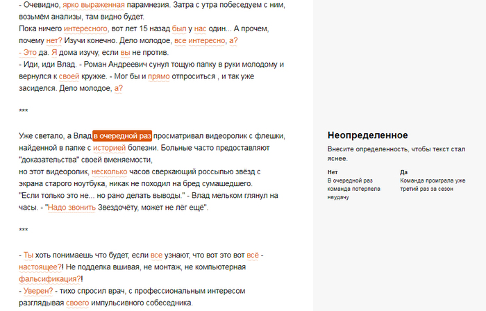 позиционируется как выискиватель повторов. Штука удобная, подсвечивает в пределах абзаца фразы типа "провести проверку", но иногда пропускает совсем явные повторы, не знаю, с чем связано.