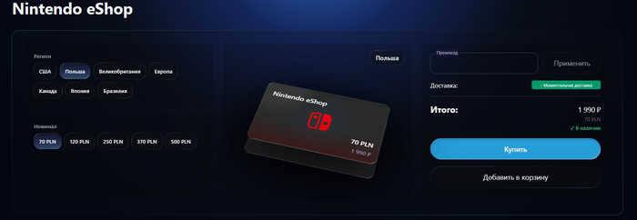 Если нужен предсказуемый сценарий, удобнее использовать Code-top.shop: покупаете подарочную карту под нужный регион и дальше активируете всё через официальный интерфейс нинтендо.