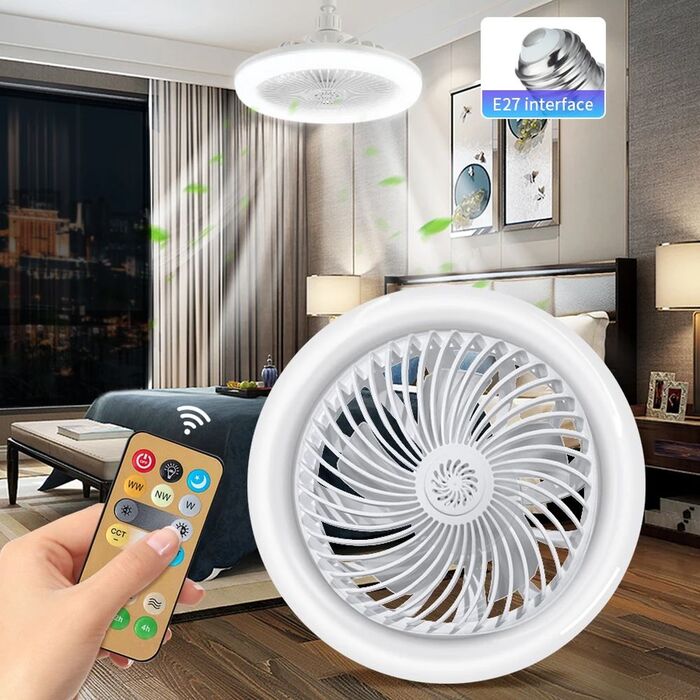 Завершу подборку наиболее необычным экземпляром лампы, которая совмещена с вентилятором, что вполне будет востребовано для небольших помещений в жаркий день или в помещении без естественной вентиляции. Световым элементом является кольцо вокруг вентилятора. С помощью идущего в комплекте пульта можно изменять яркость и температуру света, а также скорость вращения вентилятора. Свет и вентилятор могут работать как отдельно друг от друга, так и вместе. Много положительных отзывов.