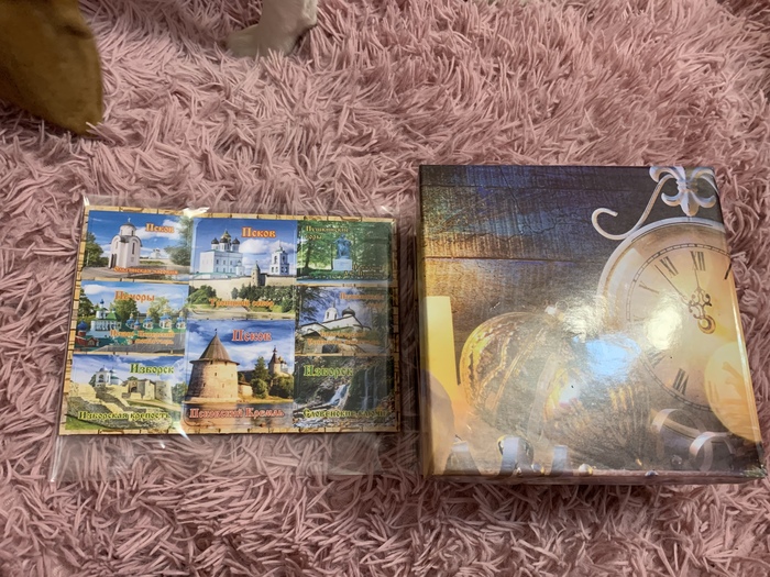 Загадочная коробочка и куча магнитов с видами Пскова.