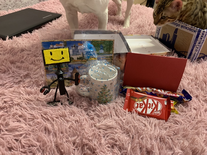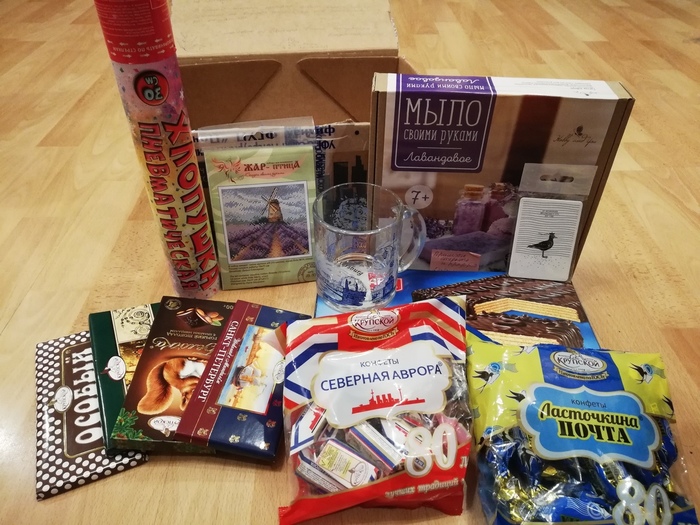 Я как это часто и во многом со мной бывает, "профукал" новогоднюю акцию АДМ, но в комментариях под одним из постов мне предложили поучаствовать "вне зачета". Мы со снегурочкой @Lucklake договорились об обмене подарками мимо акции. Но как всегда, я-балбес, поздно додумался, но все же попросил снегурочку отправить подарок не для меня, а для моей жены (решил устроить настоящий новогодний сюрприз). Поскольку я тормоз, а снегурочка к тому времени уже придумала что дарить, она сказала что соберёт подарок для нас двоих и отправит его на имя моей жены. ПР сработала оперативно и сегодня мы получили нашу посылку, жена была приятно удивлена, ведь получился по настоящему неожиданный сюрприз. К сожалению я не могу сюда выложить фото подарков, т.к. сижу здесь исключительно с телефона(постараюсь потом добавить в комментарии), но они супер. Там были различные вкусняшки(конфеты, печеньки, вкусный штрудель, чай и коньяк), классные открытки и пожелания с комментариями к отдельным подарками,кружка с фото Сергея Бодрова(из фильма Брат), книга со схемами по вязанию амигуруми, наборы для рукоделия, и супер мыло в виде бутерброда с селедкой). Кажется ничего не пропустил. Кошка Люся отдельно благодарит за коробку). Огромное спасибо , нет САСИБИЩЕ @Lucklake.