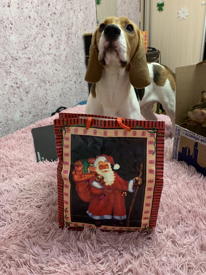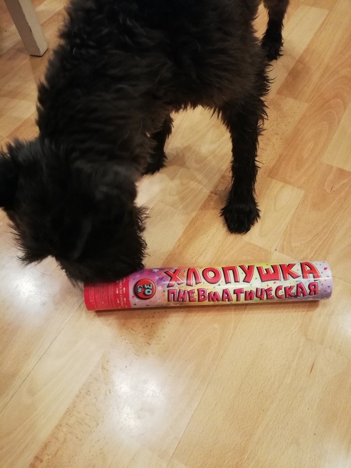 О томительном ожидании, что же там? Распаковку доверила мужу, так как у меня лапки. (собака обычно не такая страшная, просто мокрый после прогулки))