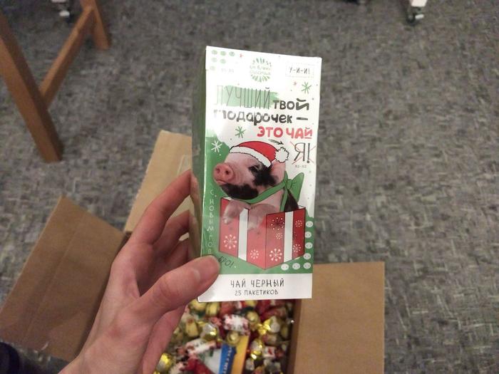 Чай в забавной упаковке с символом года, отдала мужу, как любителю чая